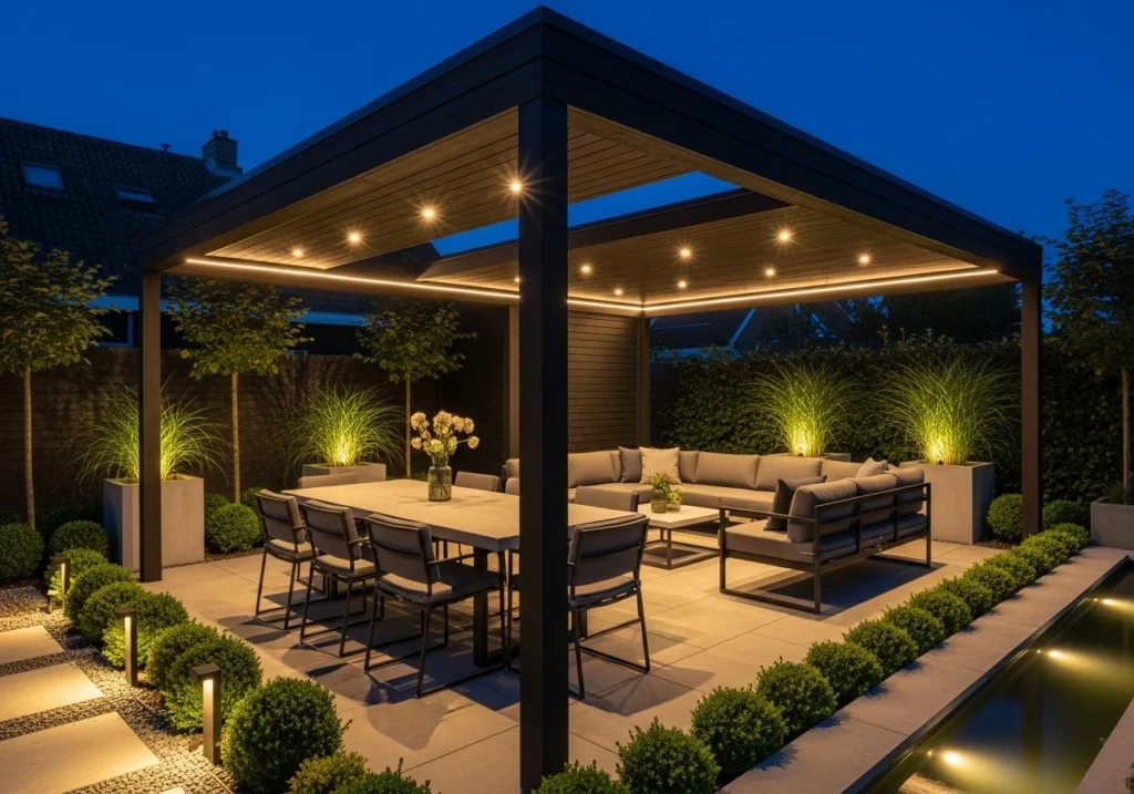For a sleek and contemporary look, install modern pergola lighting using LED strip lights along the edges. They’re energy-efficient and perfect for highlighting clean lines.