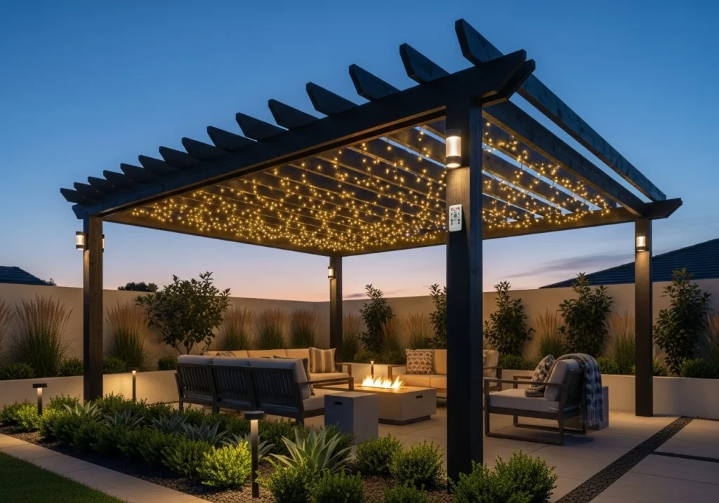 If you prefer an all-in-one solution, pergola lighting kits make setup simple. Many include dimmable features, remote controls, and weatherproof designs.
